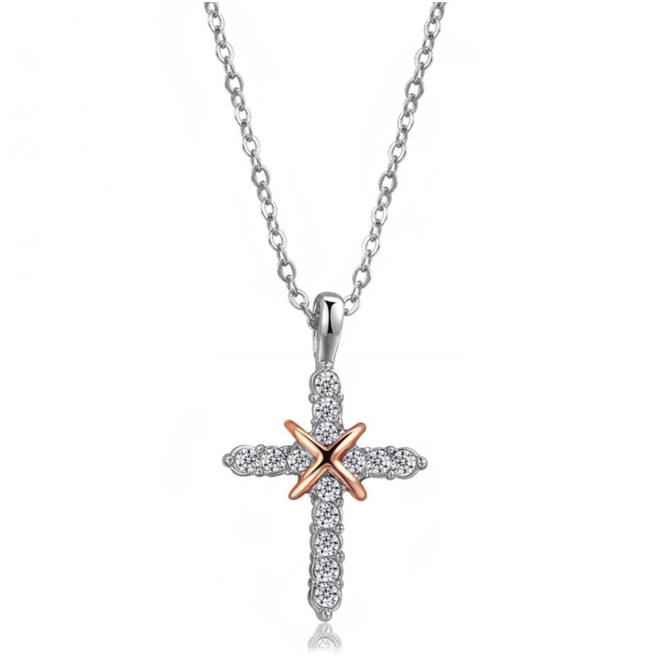Collar de Clavícula para Mujer con Diseño de Lujo Europeo Americano, Sensación de Alta Gama, Colgante de Cruz con Circonita, Colgantes de Moda