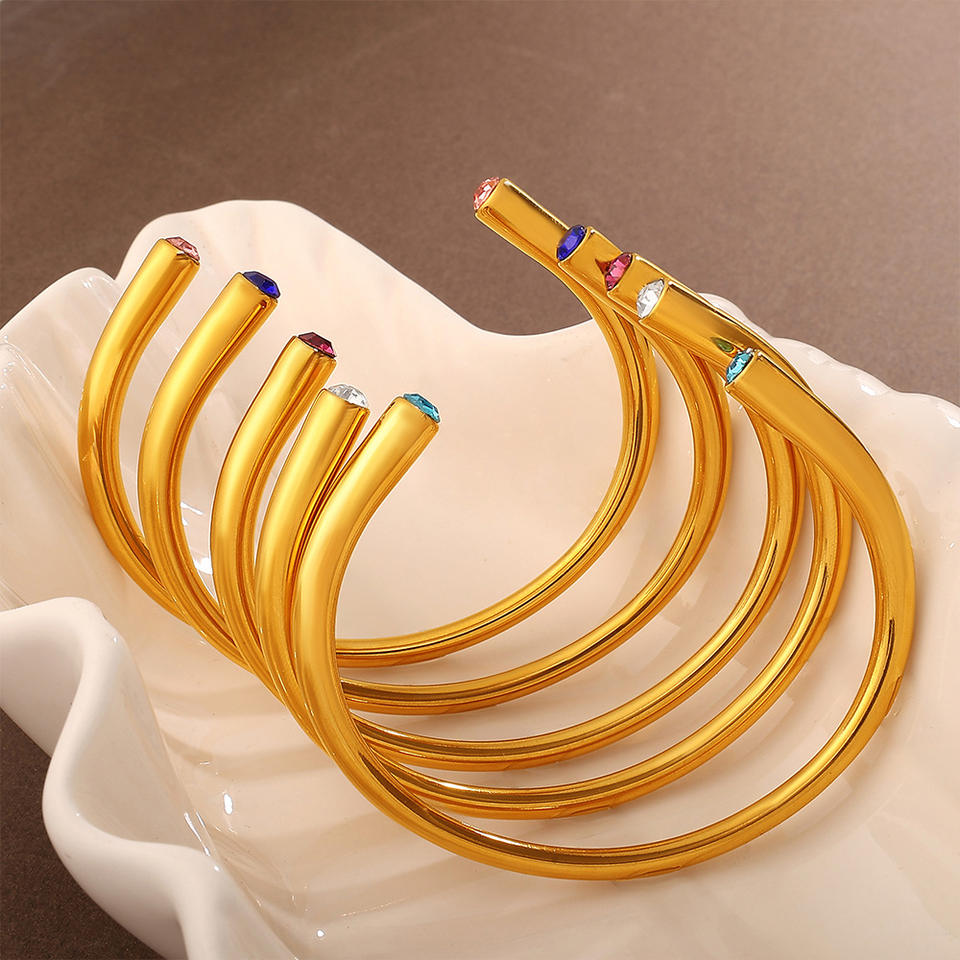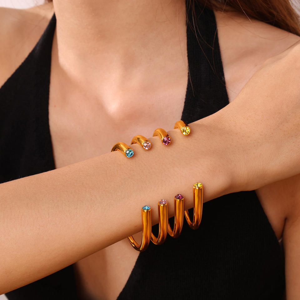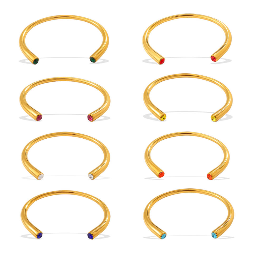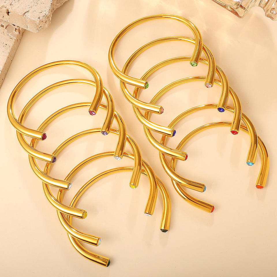 Brazalete Abierto de Aleación de Zinc con Gemas Multicolores Estilo Europeo Americano, Joyería de Fiesta para Mujer con Cristales y Diamantes de Imitación