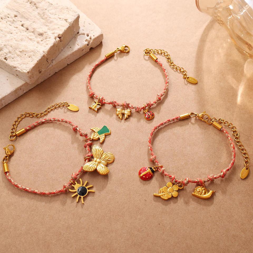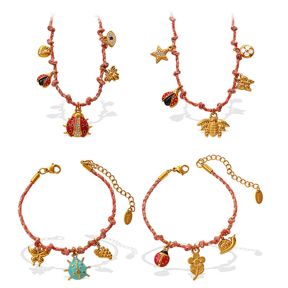 Conjunto de Collares y Pulseras de Aleación de Zinc con Colgante de Mariposa e Insecto, Diseño de Cuerda Roja Tejida Estilo Europeo-Americano, Joyería de Moda para Uso Diario