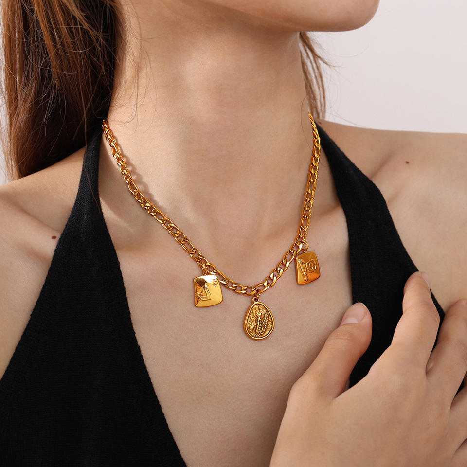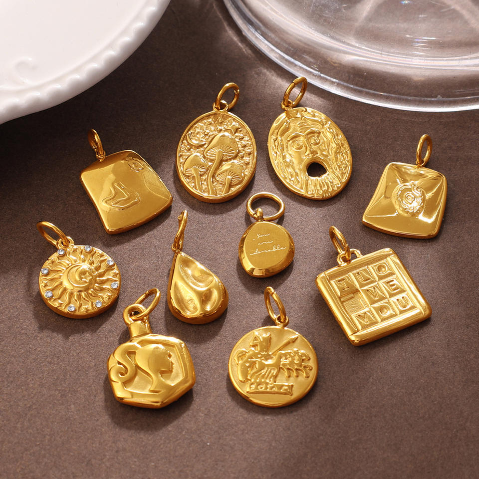 Colgante Retro Europeo Americano con Formas Mixtas en Relieve, Chapado en Acero Inoxidable, Accesorios de Joyería DIY para Hacer Collares