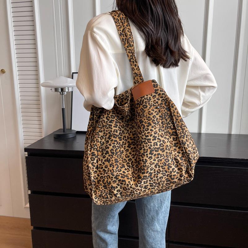 Bolso Tote de Lona con Estampado de Leopardo Retro Europeo Americano para Mujer, Nuevo, Gran Capacidad, Casual, Combinable con Todo, Poliéster Tanjing