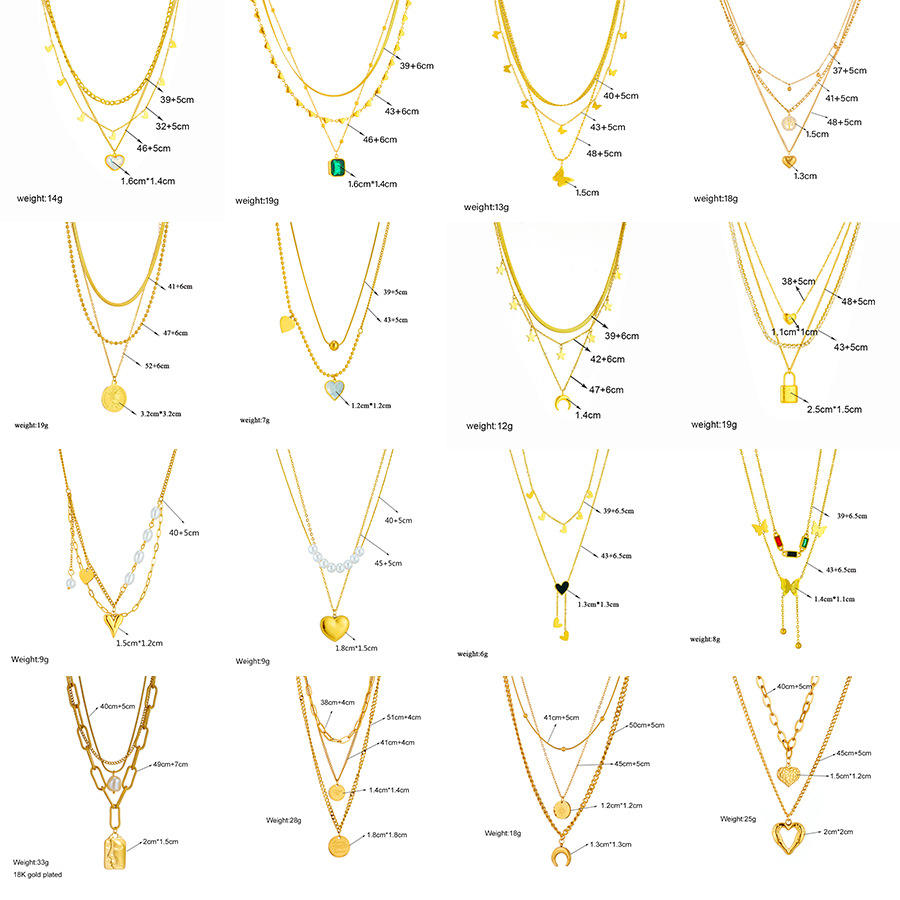 Collar con colgante de cadena apilada multicapa Retro americano europeo, acero de titanio dorado alto, acero inoxidable, estilo de moda