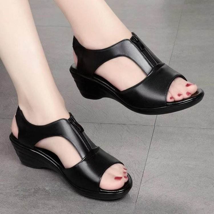 Sandalias de cuña transpirables con cremallera y boca de pez estilo romano europeo-americano para mujer al por mayor