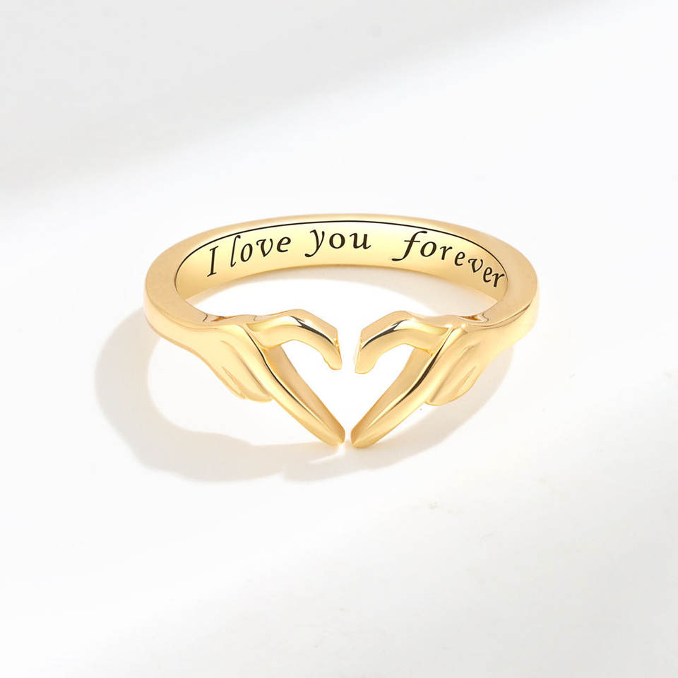 Europeo americano romántico plata esterlina 925 manos corazón gesto anillo-Instagram diseño único joyería viral al por mayor