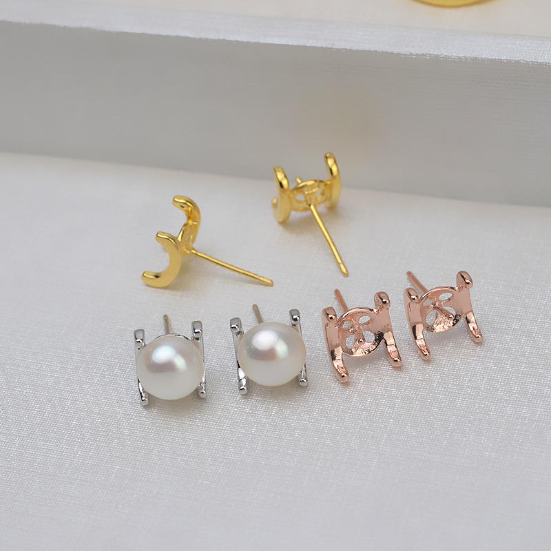 Conjunto de Colgante de Plata S925 Estilo Europeo Americano, Anillo para Mujer, Cadena de Cuatro Garras, Aretes de Perla, Componentes para Joyería DIY