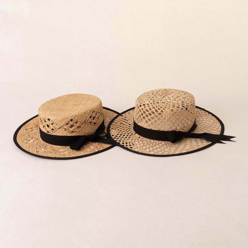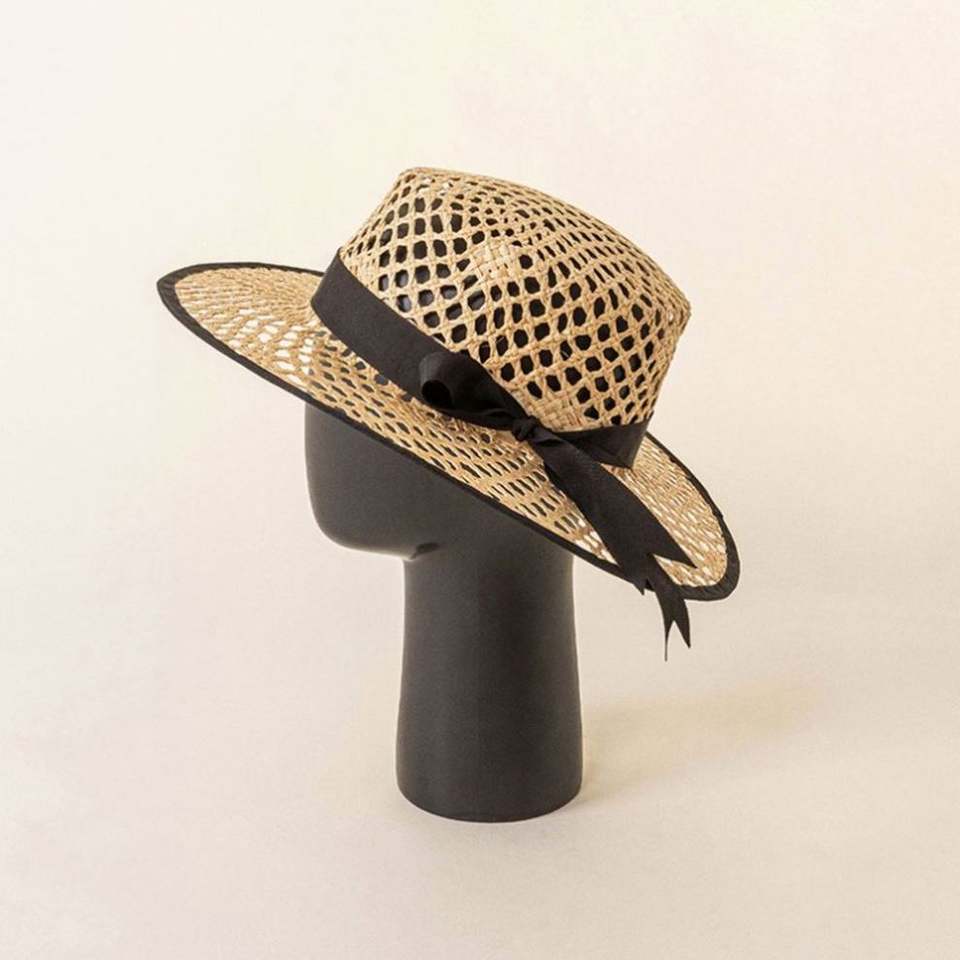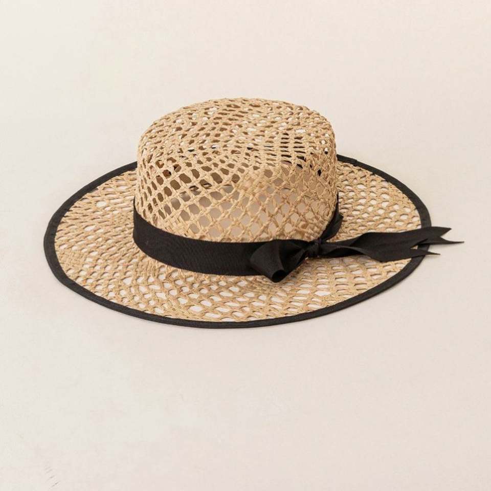 Sombrero de Paja Rafia Hecho a Mano, Estilo Europeo Americano, Primavera-Verano, con Copa Plana, Decoración de Lazo Hueco, Casual