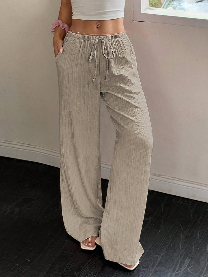 Pantalones Casuales con Volantes y Cordón Ajustable, Estilo Cami, con Parches y Empalmes, Estilo Europeo Americano, Color Sólido, Primavera 2026, para Mujer