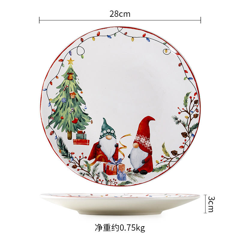 Plato de Cena de Cerámica con Diseño de Dibujos Animados de Estilo Europeo Americano, Color Verde y Rojo, para Fiestas, Apto para Microondas, para Uso Doméstico