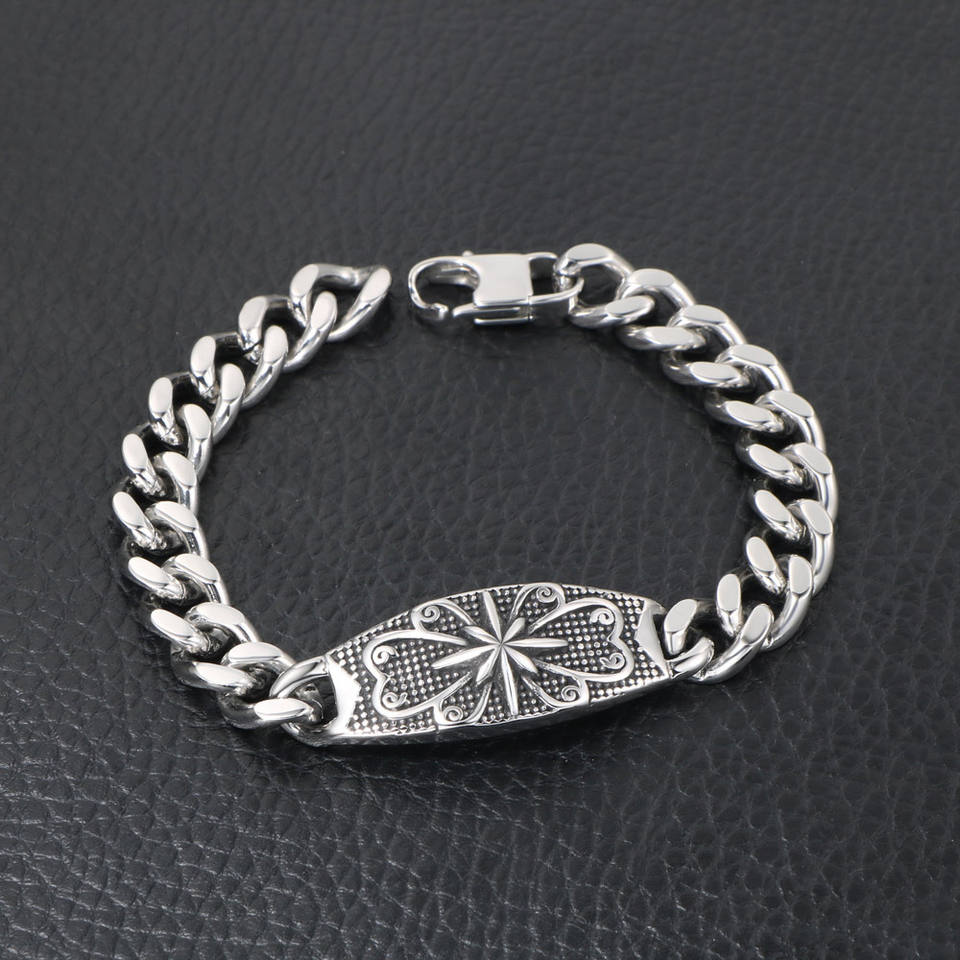 Pulsera Punk de Estrella de Ocho Puntas Estilo Europeo-Americano para Hombre, de Acero de Titanio Fundido con Diseño de Flor de Arroz, Accesorio de Moda CE551