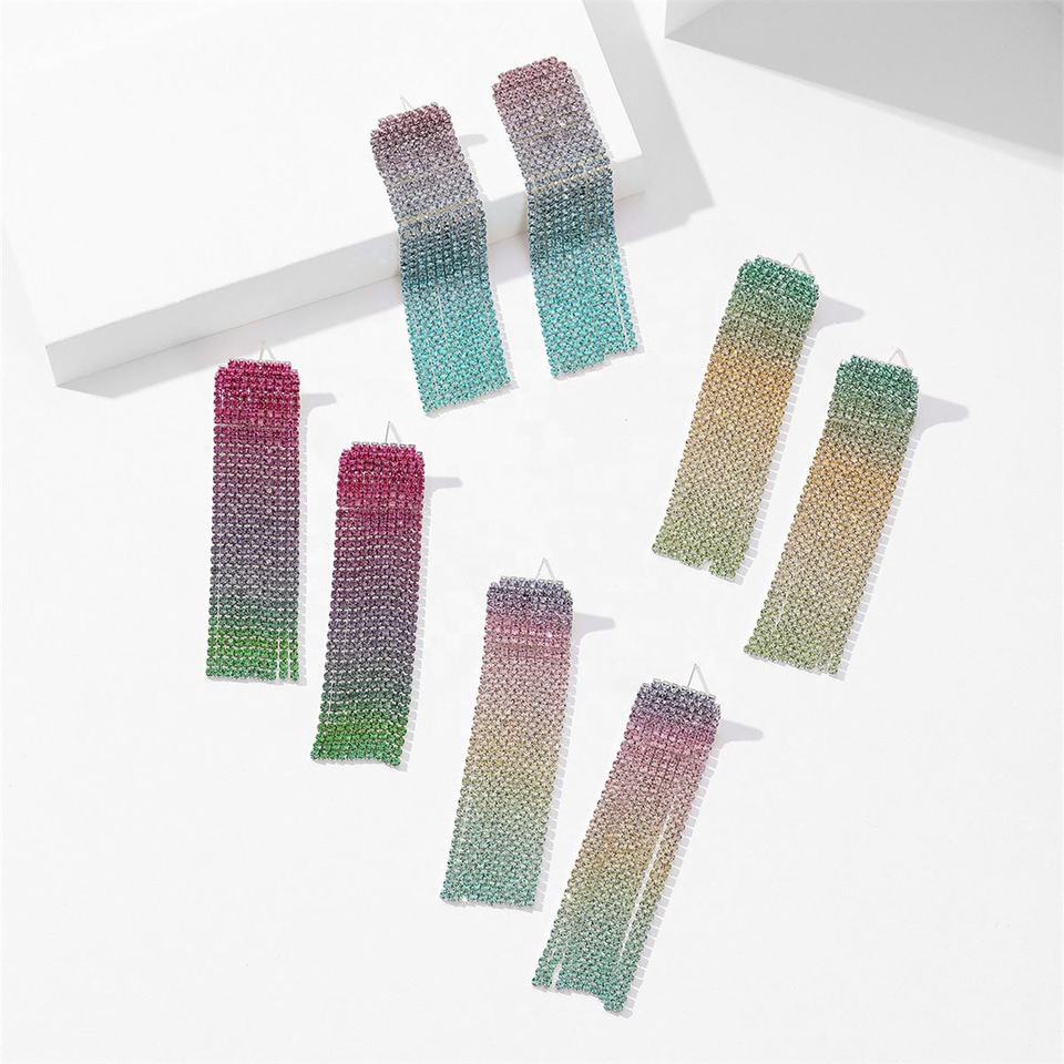 Pendientes Largos de Alta Gama Estilo Europeo Americano para Mujer, con Pedrería, Geométricos, Brillantes, Coloridos, de Diamantes, Joyería de Moda
