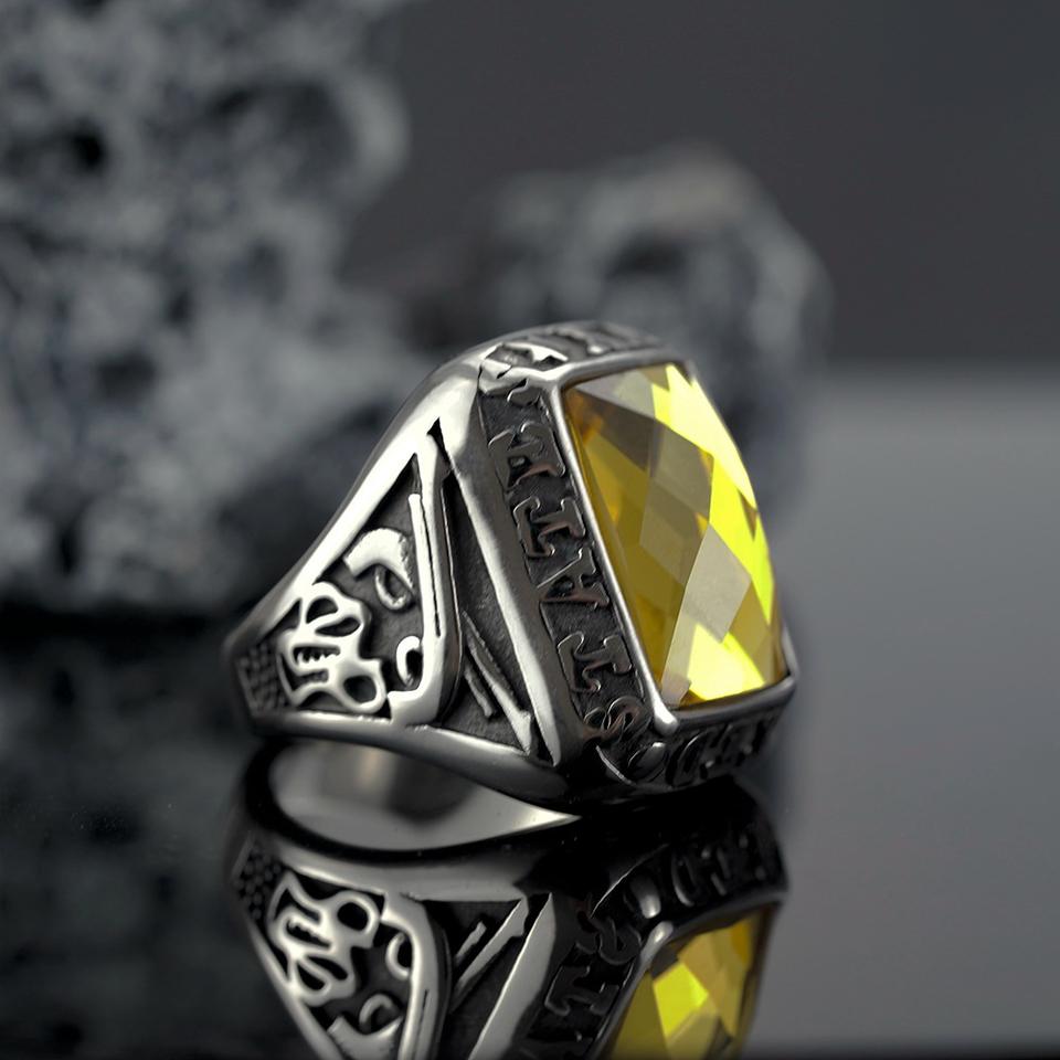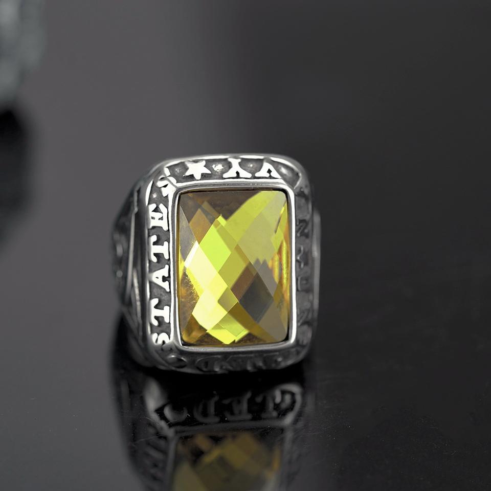 Anillo de Acero de Titanio para Hombre, Estilo Europeo Americano, Geométrico, Hip Hop, con Bisel y Topacio, Joyería, Regalo