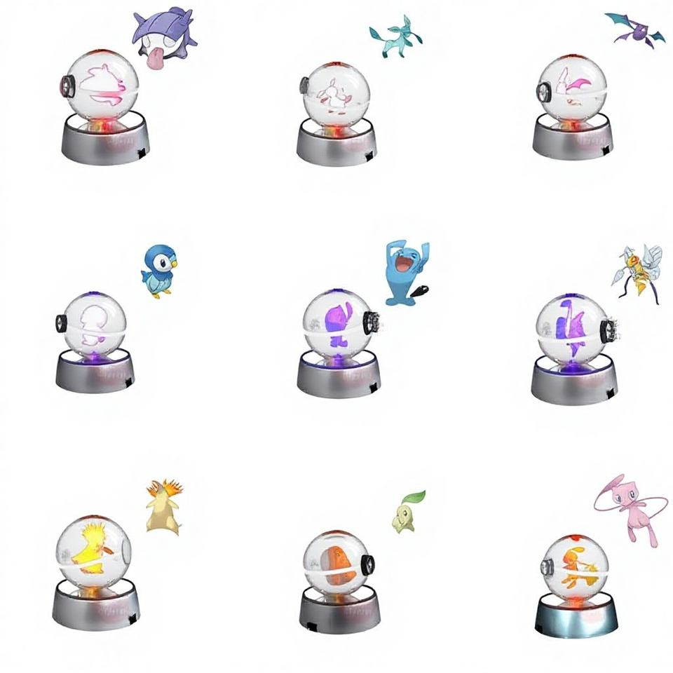 Bola de Cristal Pokémon con Luz LED 3D, Estilo Europeo Americano, Popular, con Grabado Interior, Regalo de Cumpleaños para Niños, Venta Internacional