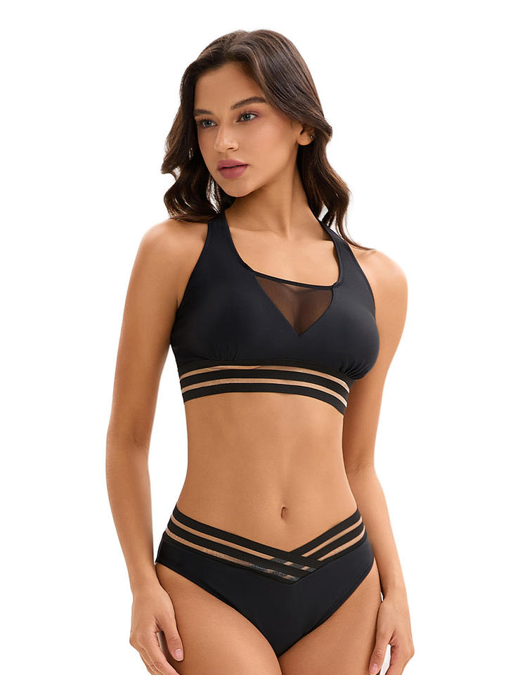 Bikini triangular sin espalda sexy de estilo americano europeo con característica de talla grande Patrón sólido transpirable y ecológico