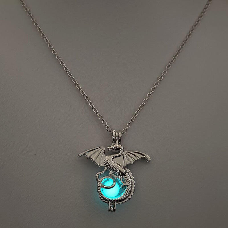 Collares con Colgante de Dragón Luminoso de Estilo Europeo Americano, Cadena Figaro, Plateado en Plata Antigua, para Mujer