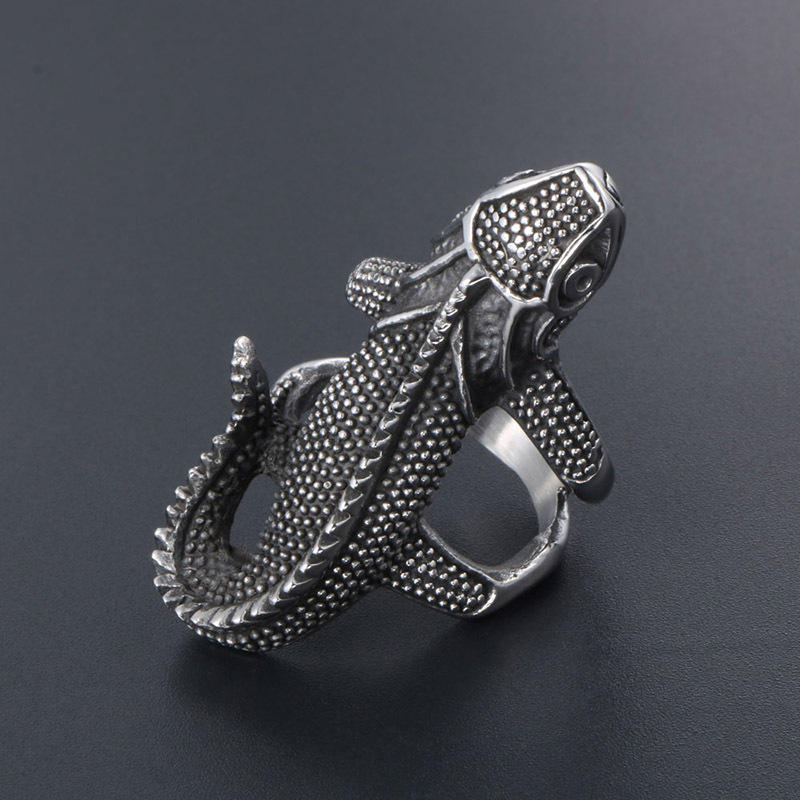 Anillo de Lagarto de Acero de Titanio Estilo Europeo Americano, Joyería Punk con Forma de Animal y Micro Pavé para Hombre SA507