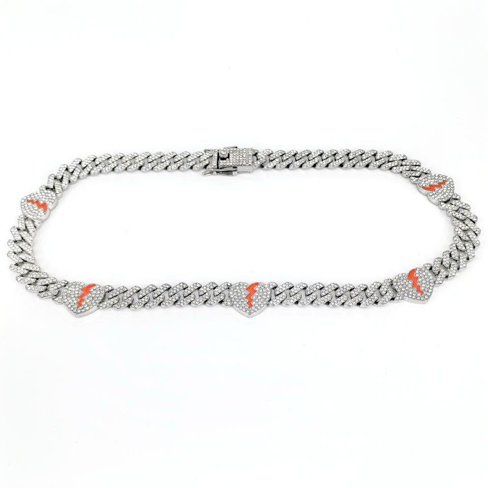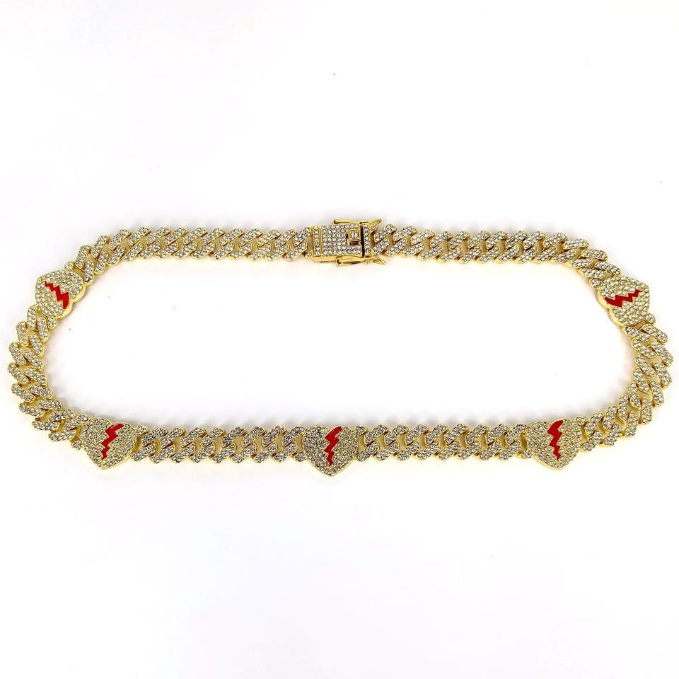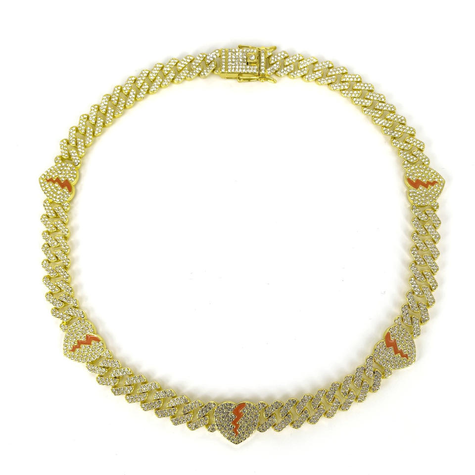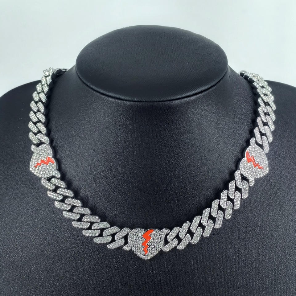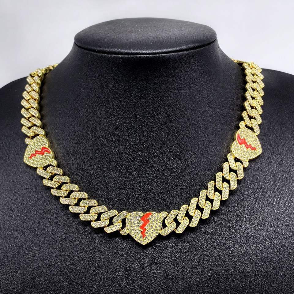 Collar de Cadena Cubana Estilo Hiphop Rapero Moderno Europeo Americano, 10mm, Forma de Diamante, Geométrico, con Diseño de Corazón Roto