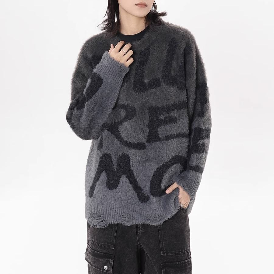 Suéter Vintage Europeo Americano para Hombre, Estilo Urbano, Cuello Redondo, Manga Larga, Colores Contrastantes, Diseño de Letras Tejidas, Invierno