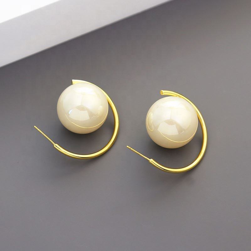 Pendientes de Perlas Blancas de Diseño Simple y Moderno para Mujer, Estilo Europeo Americano, Lujo de Alta Gama con Tonos Claros Exagerados, Venta al por Mayor