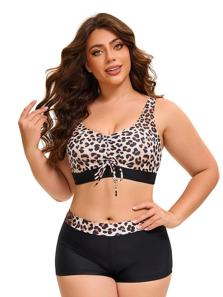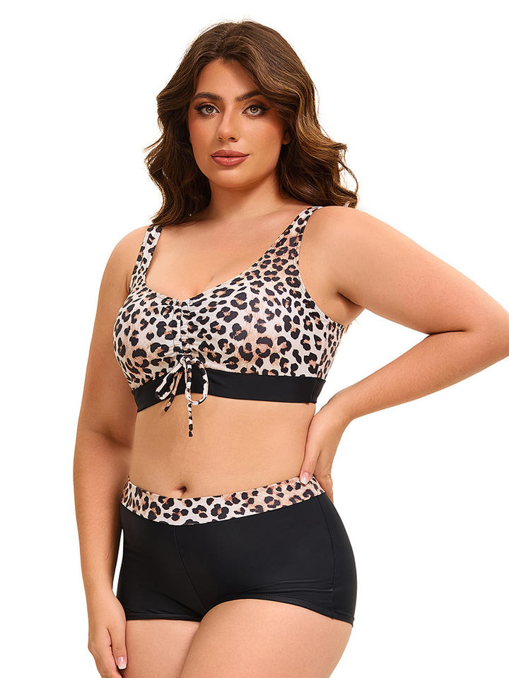 Traje de baño de talla grande ecológico con diseño de espalda recortada con estampado de patrón sólido para mujer europea americana Sexy