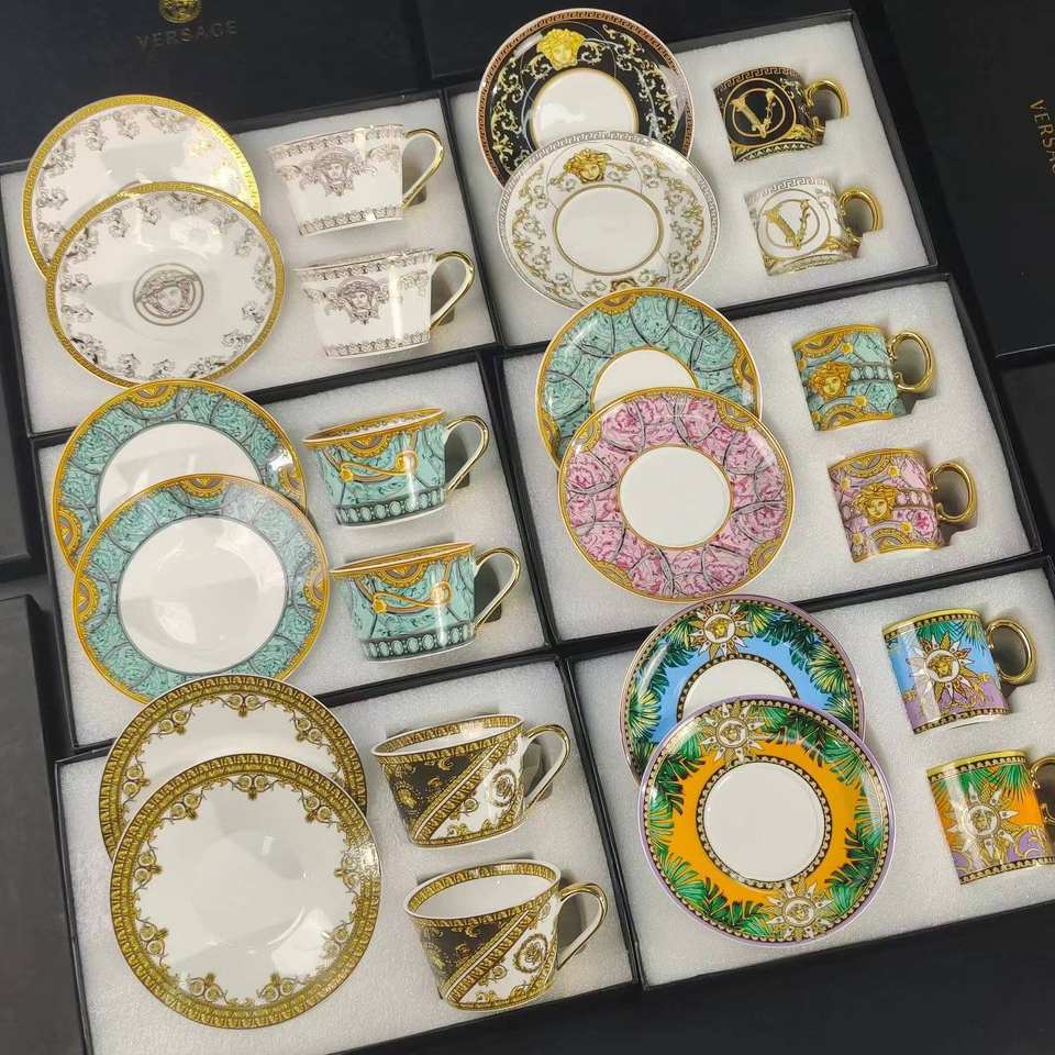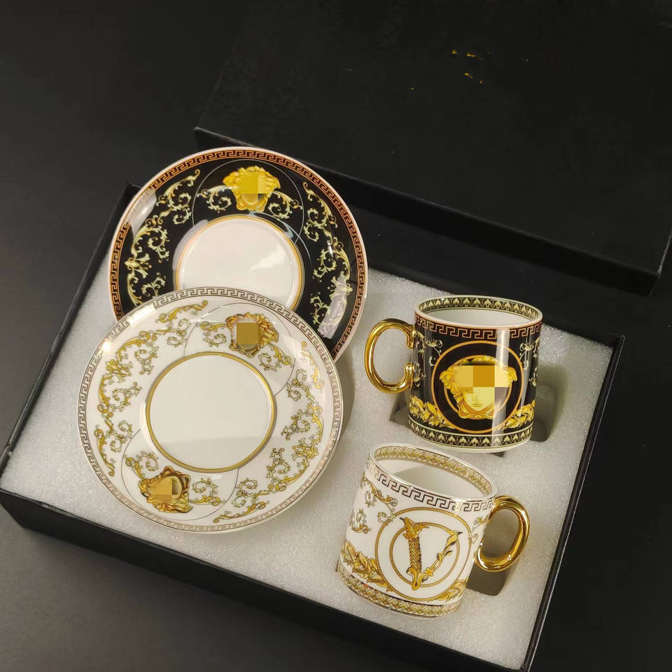 Tazas de Café de Porcelana Europea, Taza de Té de Cerámica Pintada en Oro, Empaque de Caja de Regalo de Lujo, Venta al por Mayor para Restaurantes