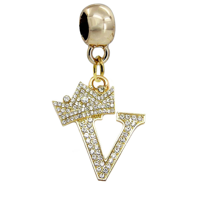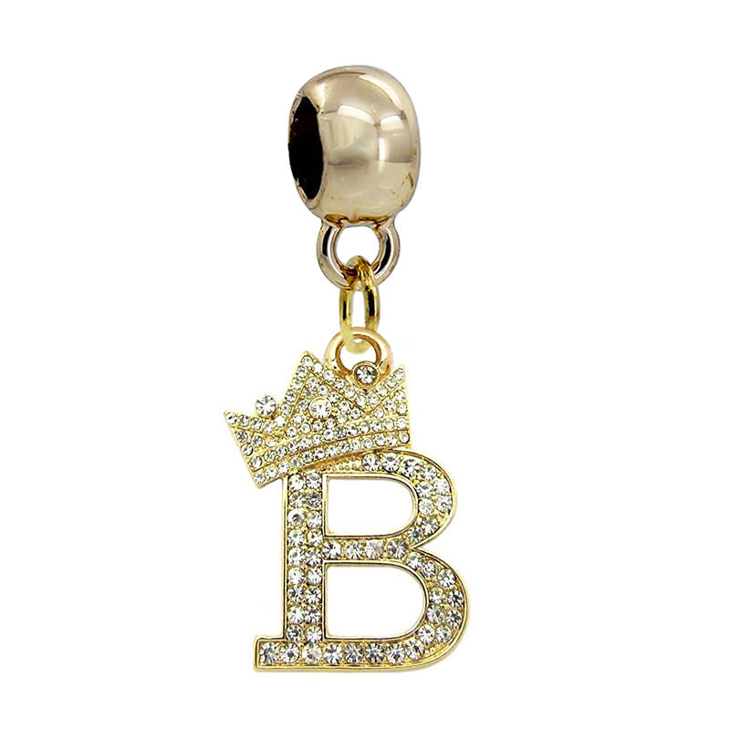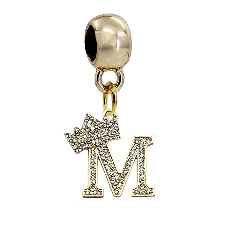 Pulsera Europea DIY con Incrustaciones de Metal, Diamantes de Imitación, Cristal, Capital, Colgante, 26 Letras, Corona Inglesa