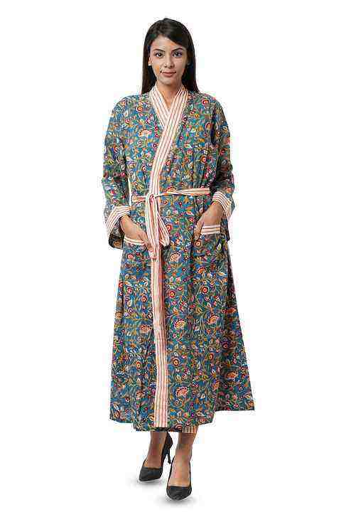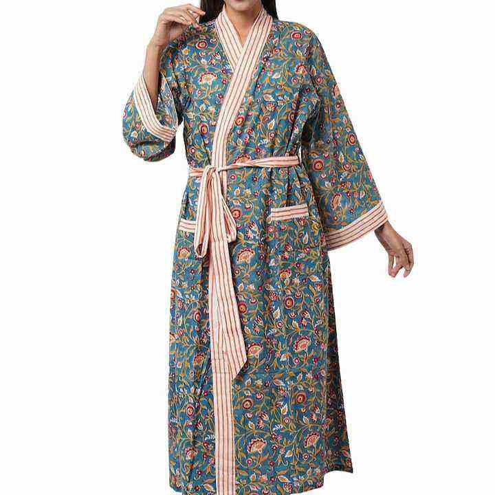 Albornoz Maxi de Algodón Europeo para Mujer, Bata de Baño de Calidad, Kimono Casual con Estampado Floral, Cardigan de Lujo Estilo Boho para Primavera, Verano y Otoño