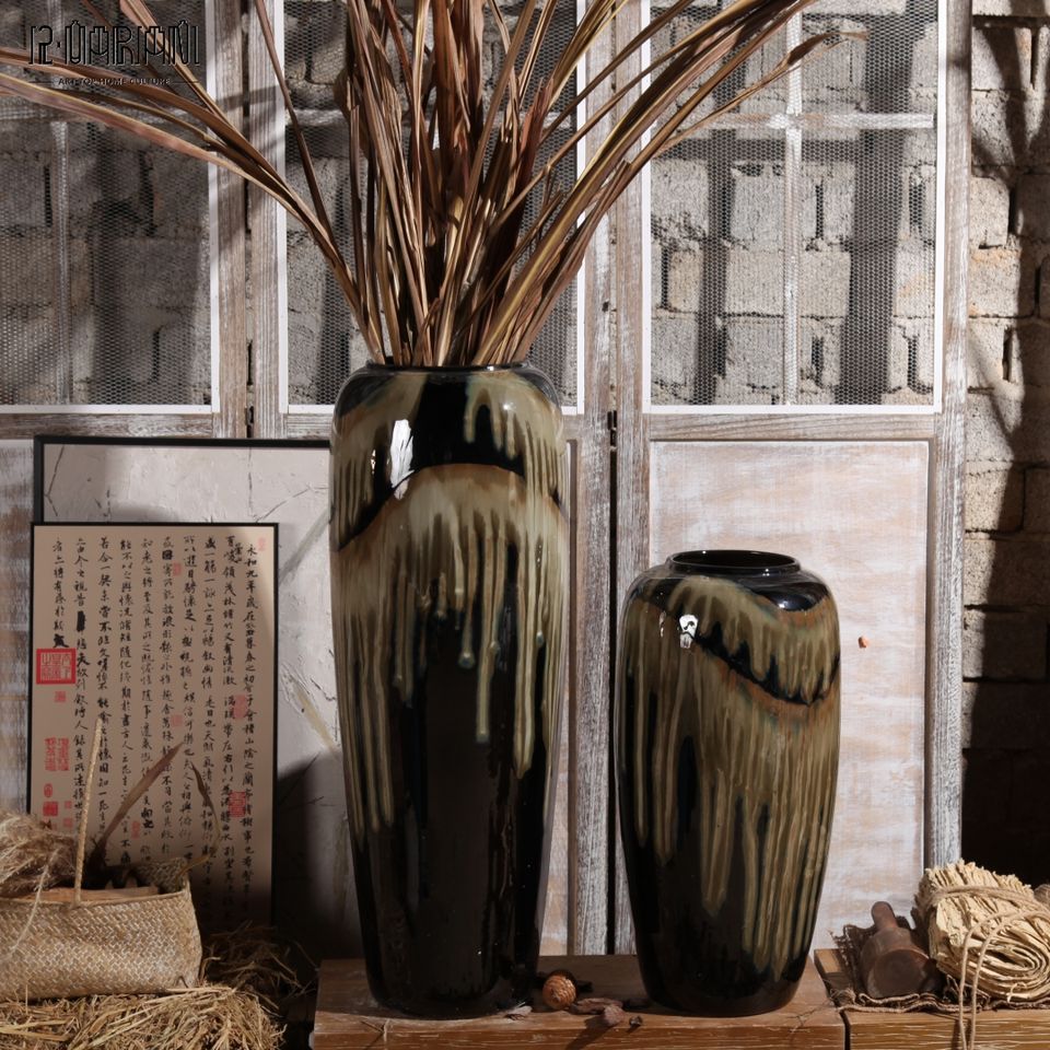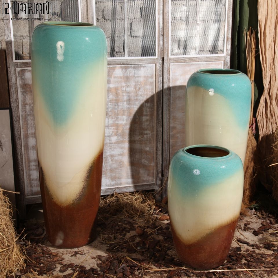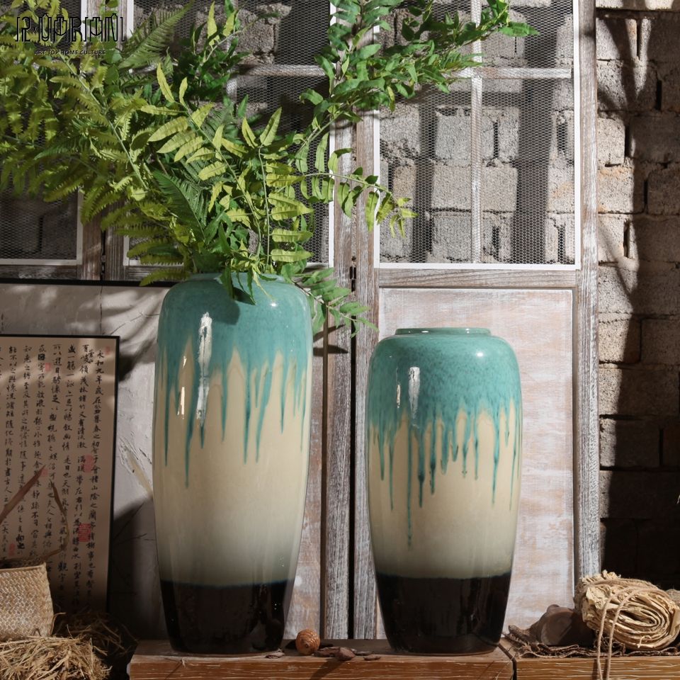 Florero de cerámica de piso alto grande esmaltado de Color de alta temperatura de rama seca creativa europea para decoración de Club de Hotel