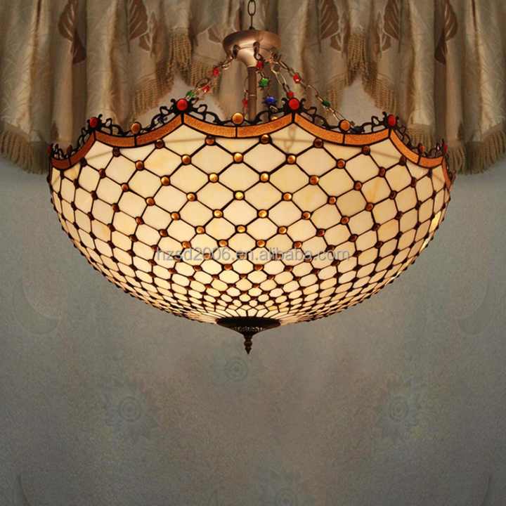 Lámpara Colgante de Vitral Tiffany de Estilo Retro Hecha a Mano, Diseño Europeo, 32 Pulgadas, Fuente de Luz LED, Hierro, para Hotel o Villa