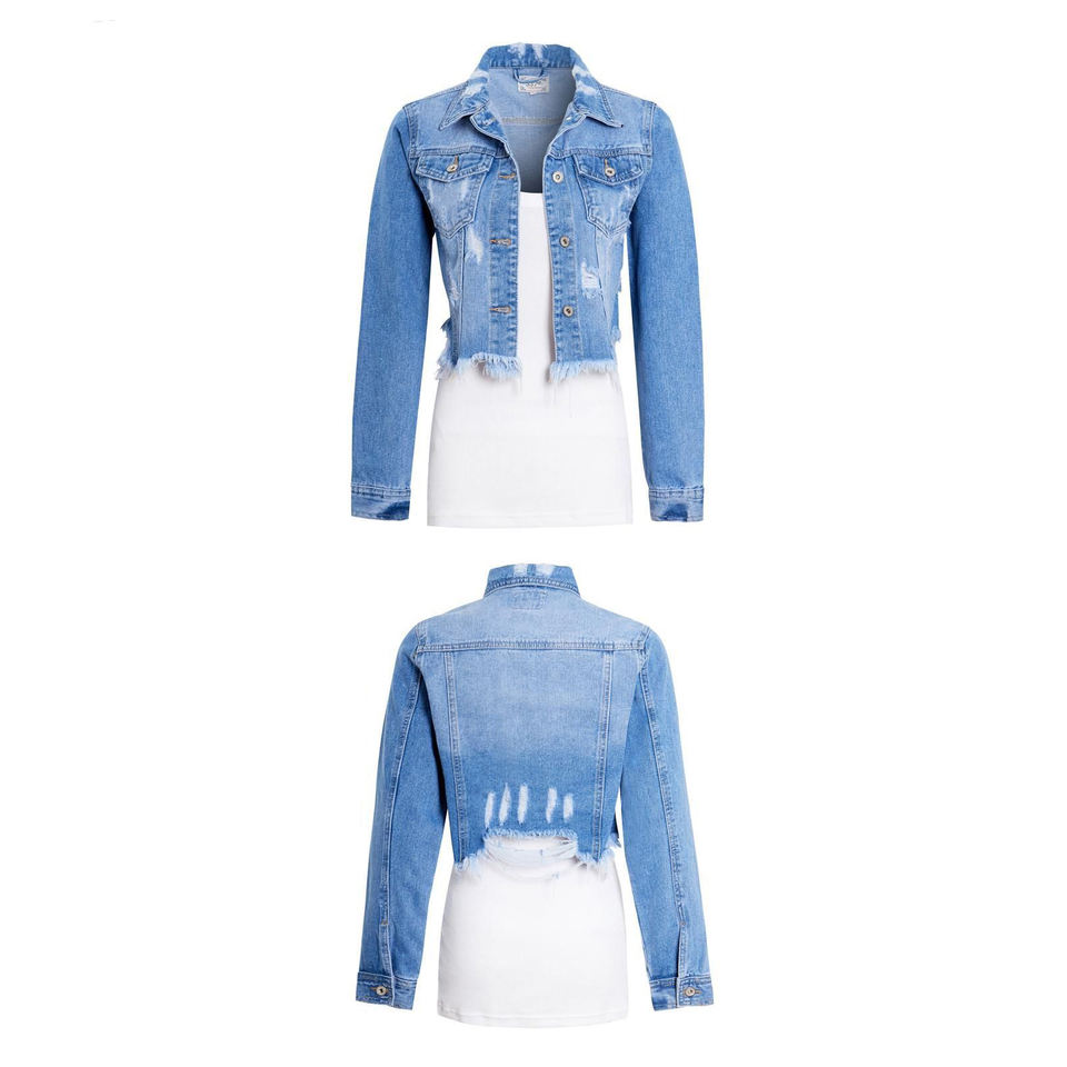 Chaqueta vaquera recortada de diseño europeo para mujer, informal, de encaje lavado con ácido sólido, con contraste, primavera y otoño, parche de diamante con incrustaciones de agujeros