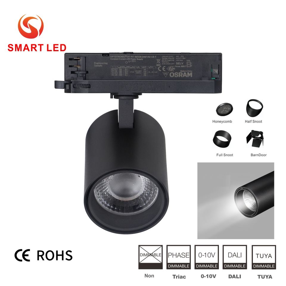 Luminaria LED de Riel de Alta Eficiencia de Diseño Europeo para Interiores, de Aleación de Aluminio, 1/2/3 Cabezas, Regulable Triac/Dali, 2/3/4 Hilos, CRI95, 3500K Cálida