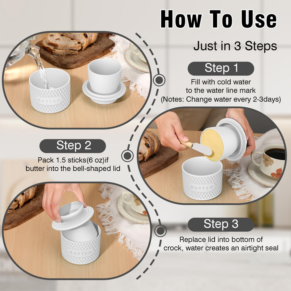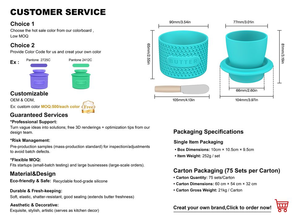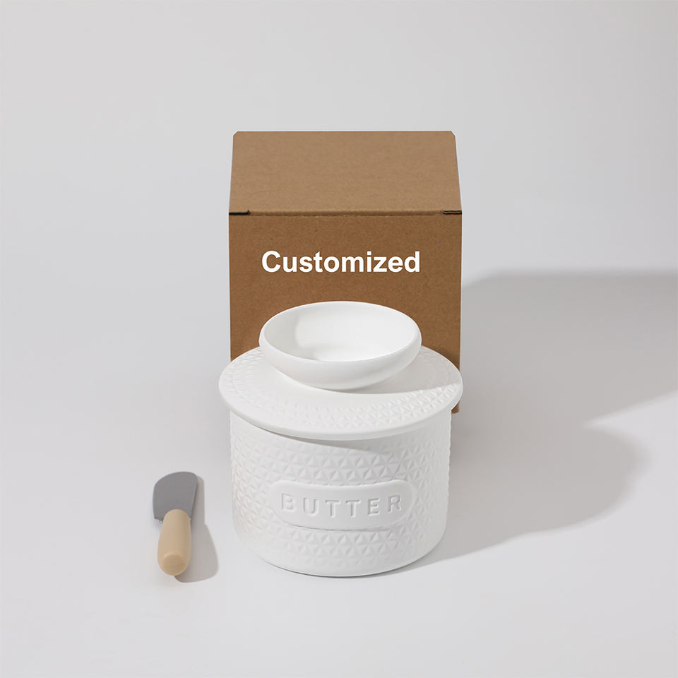 Juego de Utensilios de Cocina Estilo Europeo, Plato para Mantequilla de Silicona Personalizable con Base de Cerámica y Tapa Hermética, Ecológico