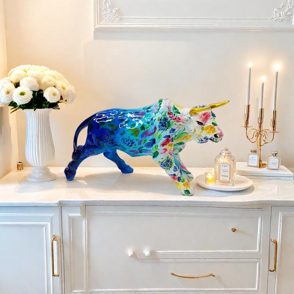 Adorno de Vaca de Resina Epoxi de Arte Popular Europeo, Decoración para Sala de Estar, Porche, Mueble de TV/Vino, Regalo de Inauguración de Casa