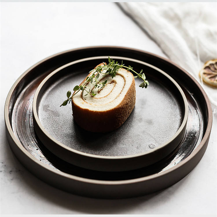 Vajilla de Cerámica Europea Gris con Incrustaciones Doradas, Elegante y de Lujo, Platos de Cerámica para Carne, Pasta, Postre y Cena