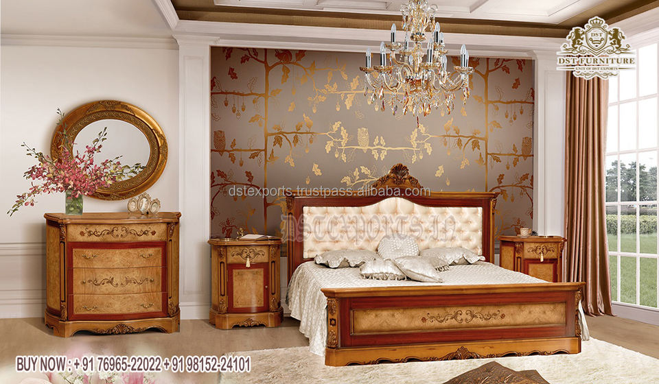 European Hand Carved Crown Bed With NightstandsProduct name
