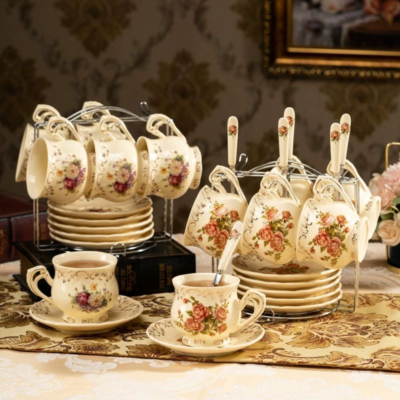 Taza de Café de Cerámica de Lujo Europeo, Práctica, para Té Inglés, Hogar u Oficina, Juego de Tazas para Té de Flores