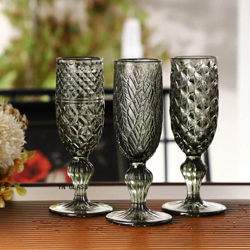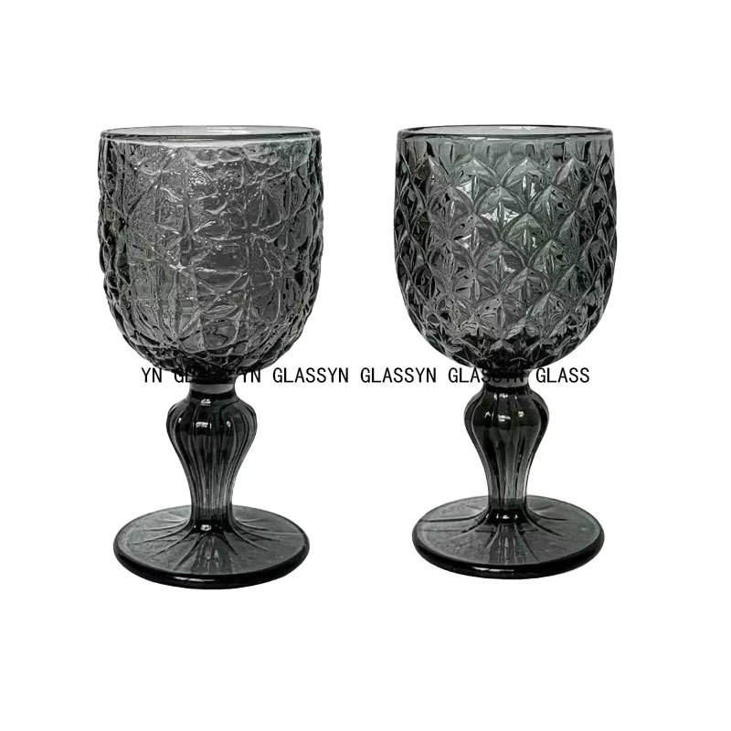 Copa de vino tinto en relieve Retro europeo Color original Fábrica al por mayor Diseño clásico Humo Gris Vientre