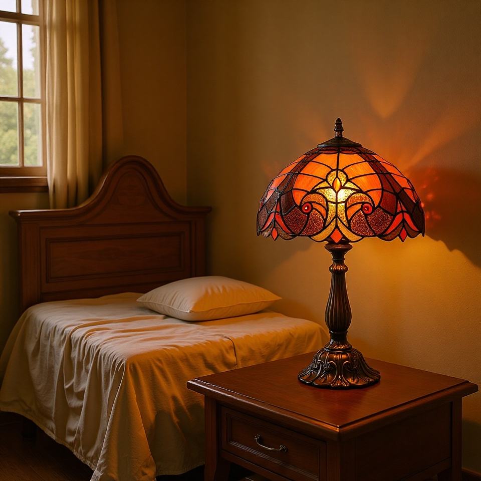 Lámpara de Mesa de Estilo Retro Europeo de 12 Pulgadas, con Vidrio de Colores que Protege la Vista, 5W de Potencia, para Decoración de Dormitorio, Estudio, Hotel, Comedor