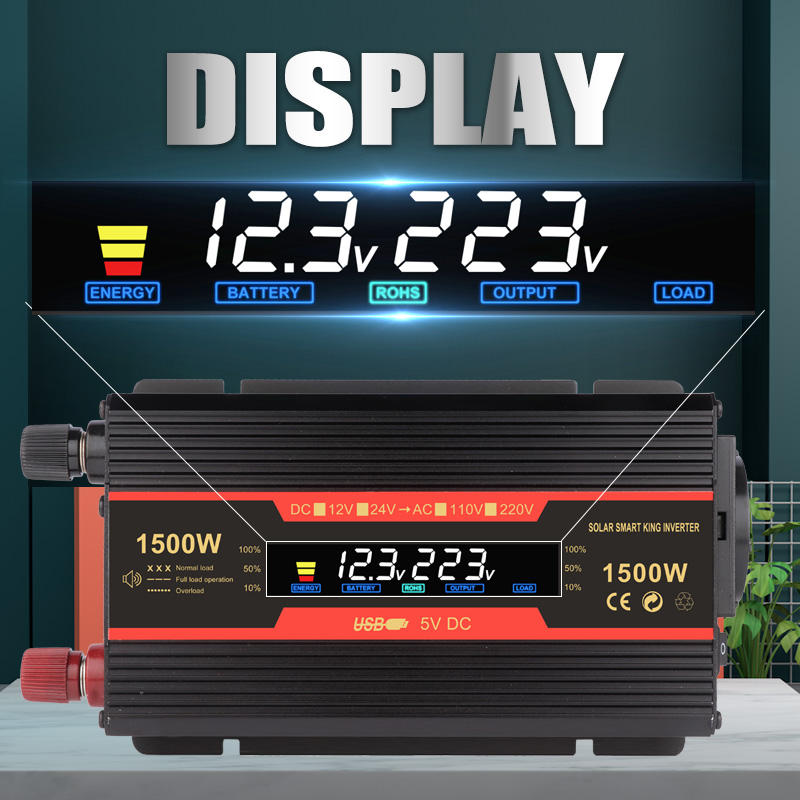 Inversor de coche con pantalla digital monofásica de 2000W estándar europeo 12V/24V a 220V convertidor de potencia doméstico