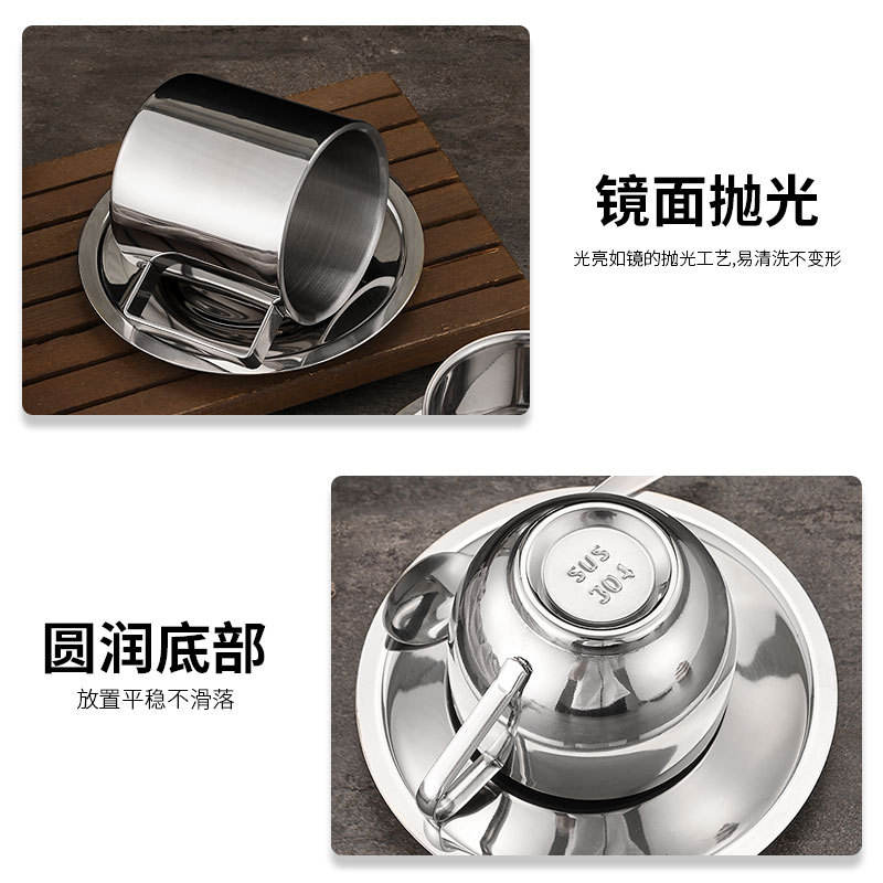 Taza de café de acero inoxidable 304 estilo europeo, de doble pared, anti-quemaduras, con juego de platillo para té y café