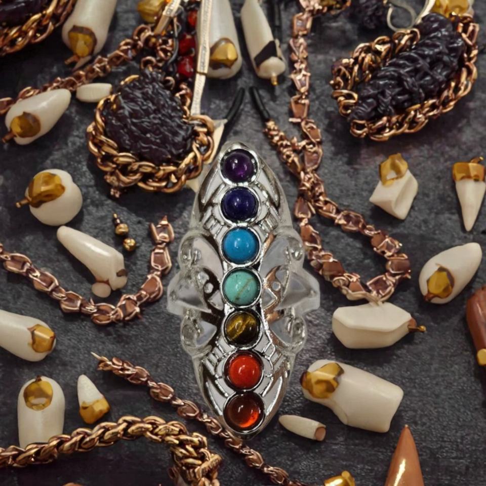 Estilo europeo 7 Chakra piedra preciosa ajustable cobre dedo anillo amor tallado pulido curación cristal artesanía joyería de moda regalo