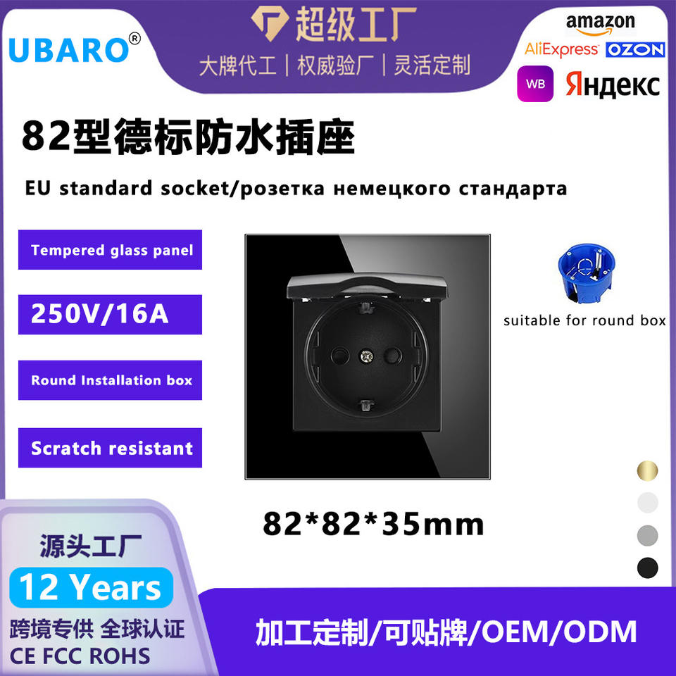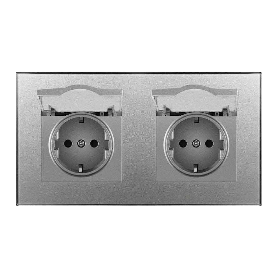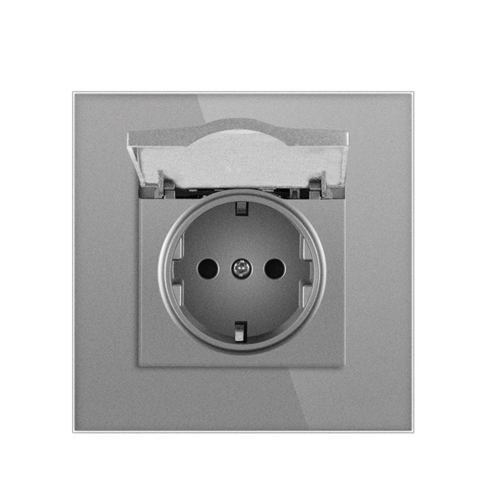 Enchufe impermeable de estilo europeo de 82 mm IP44 con panel de vidrio y cubierta para instalación oculta