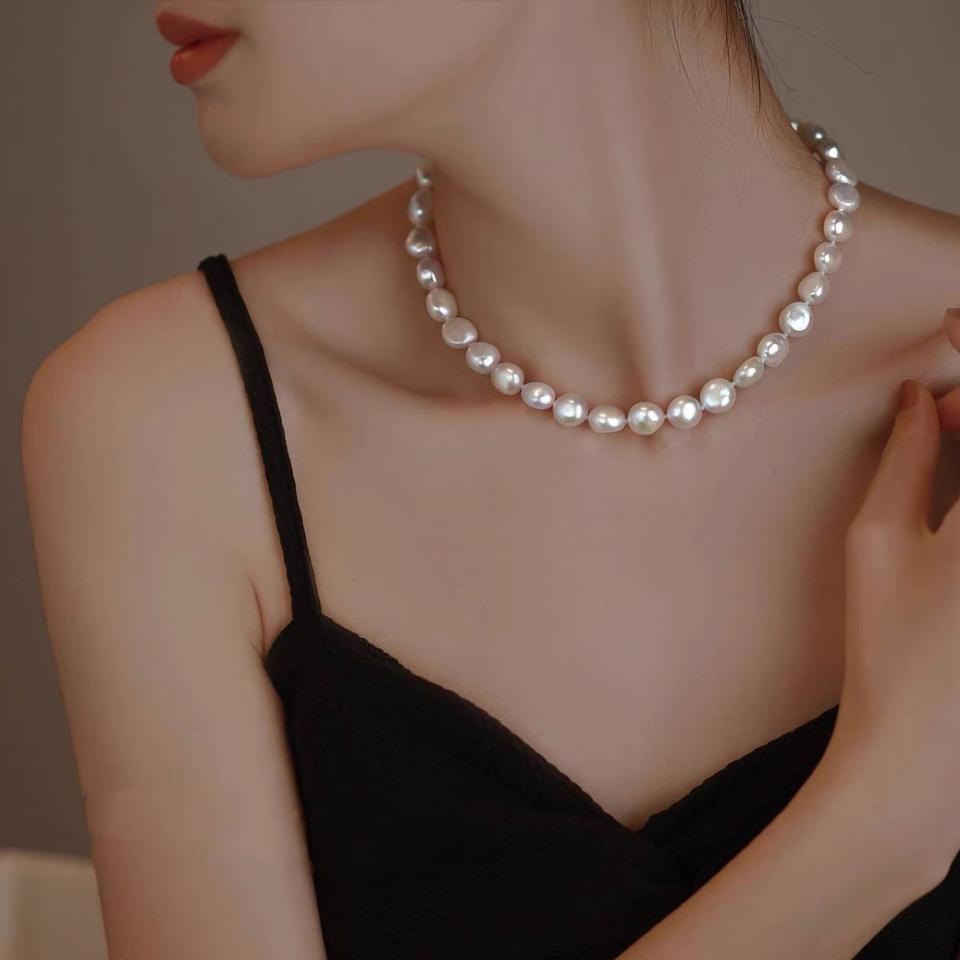 Collar de Estilo Barroco Europeo para Mujer, Cadena de Perlas de Agua Dulce de Forma Natural, Lujo Ligero y Exclusivo