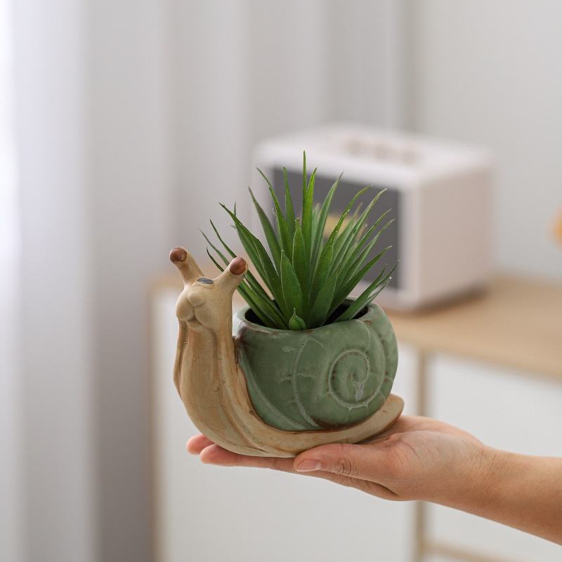 Maceta de Cerámica Verde Bronce Estilo Europeo, Linda, Creativa, Personalizada, con Forma de Caracol, Moderna, Esmaltada, para Decoración de Sala de Estar