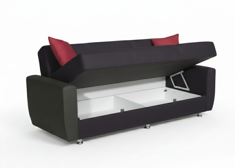 Sofá Cama Convertible Estilo Europeo, Extensible, con Almacenamiento, Estructura de Madera Maciza, Mecanismo Clic Clac, Tapicería de Tela Ecológica