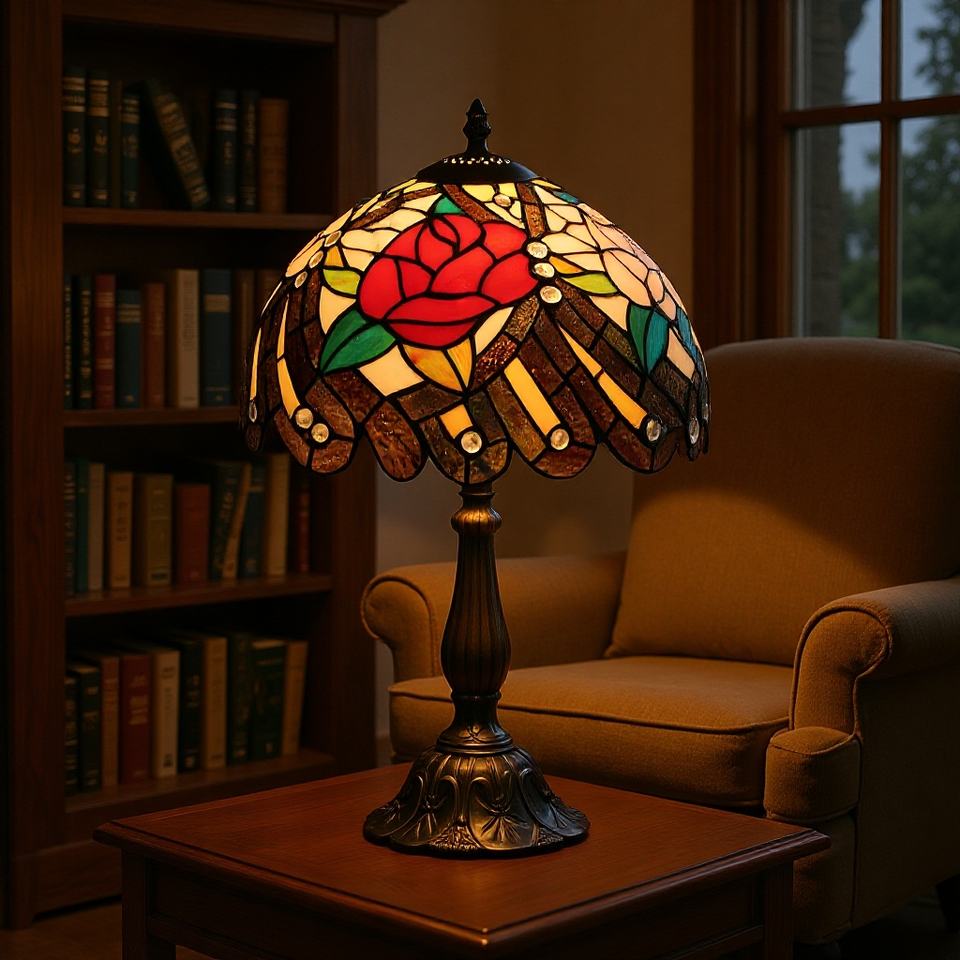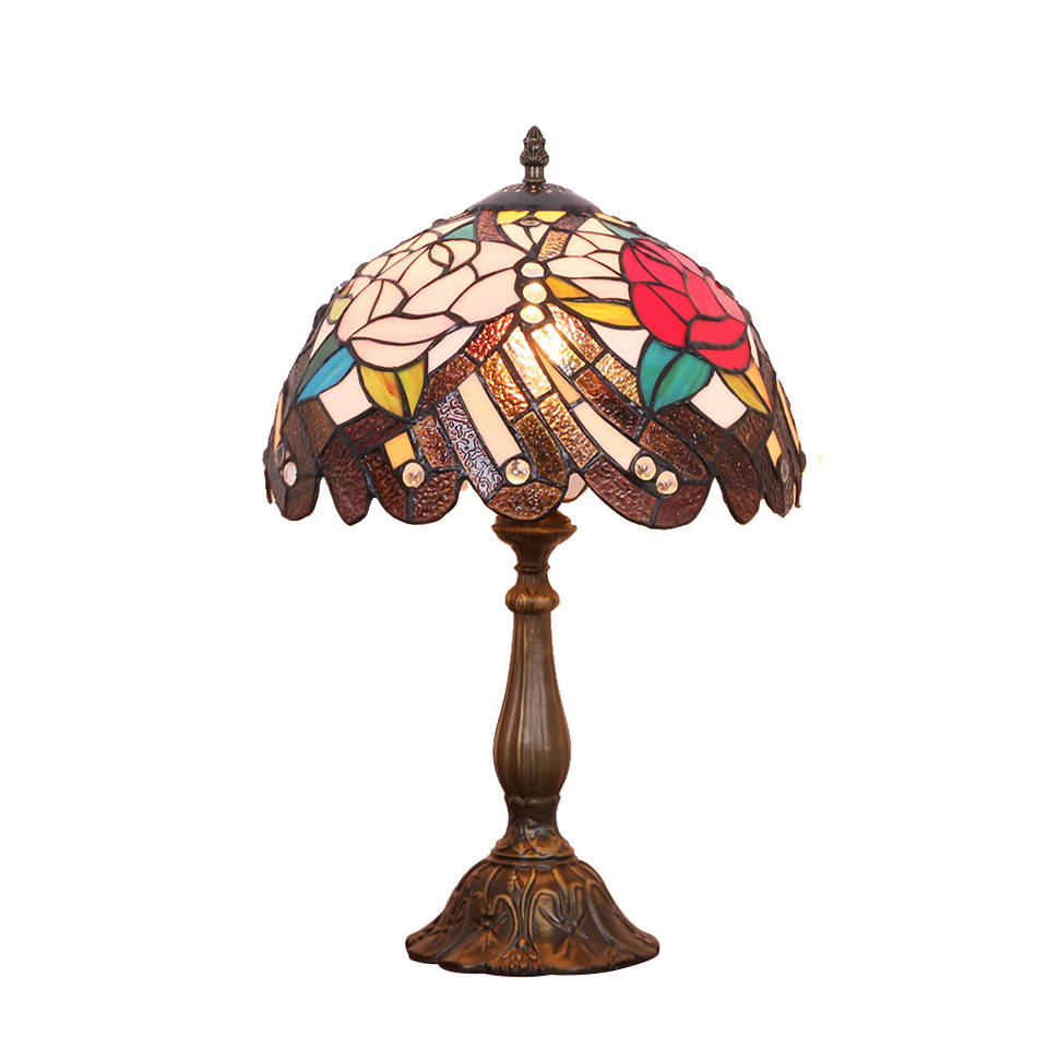 Lámpara de Mesa de Flores de Peonía de Doble Color Estilo Europeo, Vidrio Teñido Romántico Cálido Color Vainilla para Estudio y Cafetería, Voltaje de Entrada de 5V