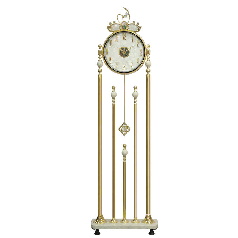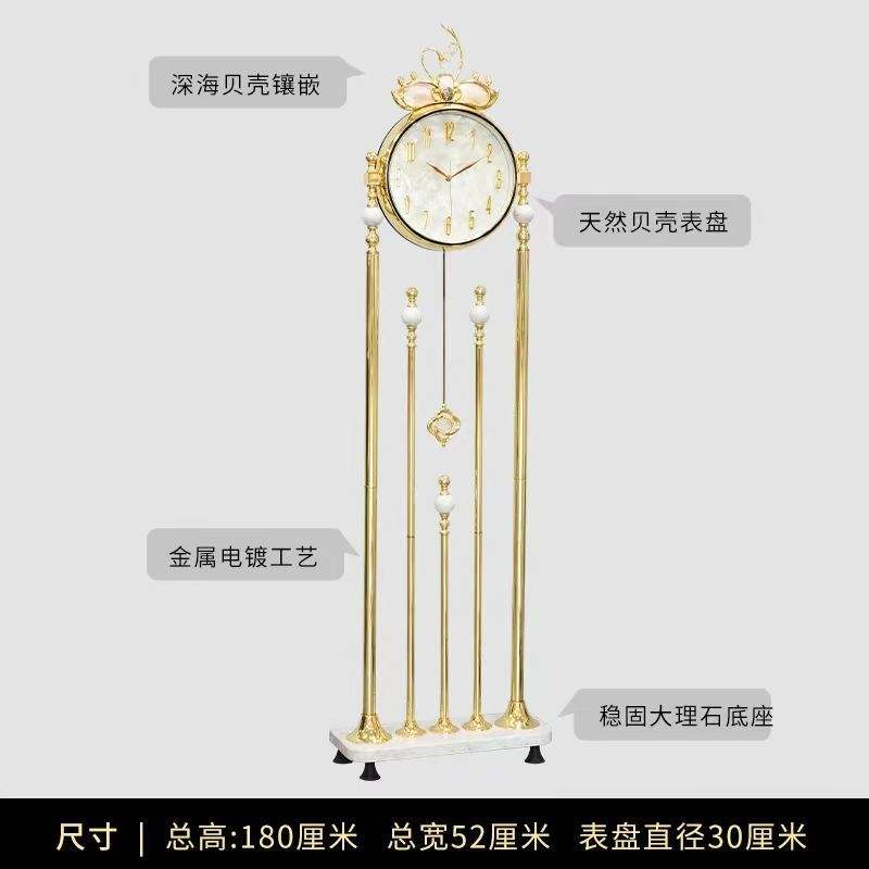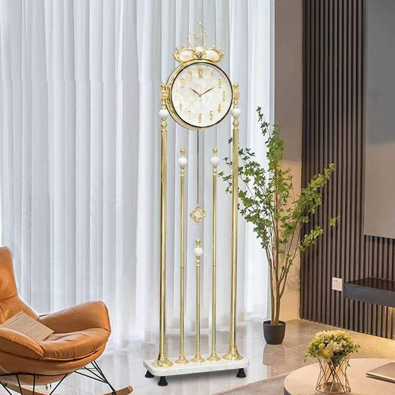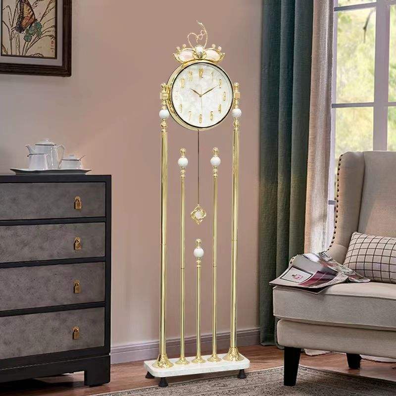 European Style Floor Clock Quartz Movement Golden Standing Clock Living Room Decoration