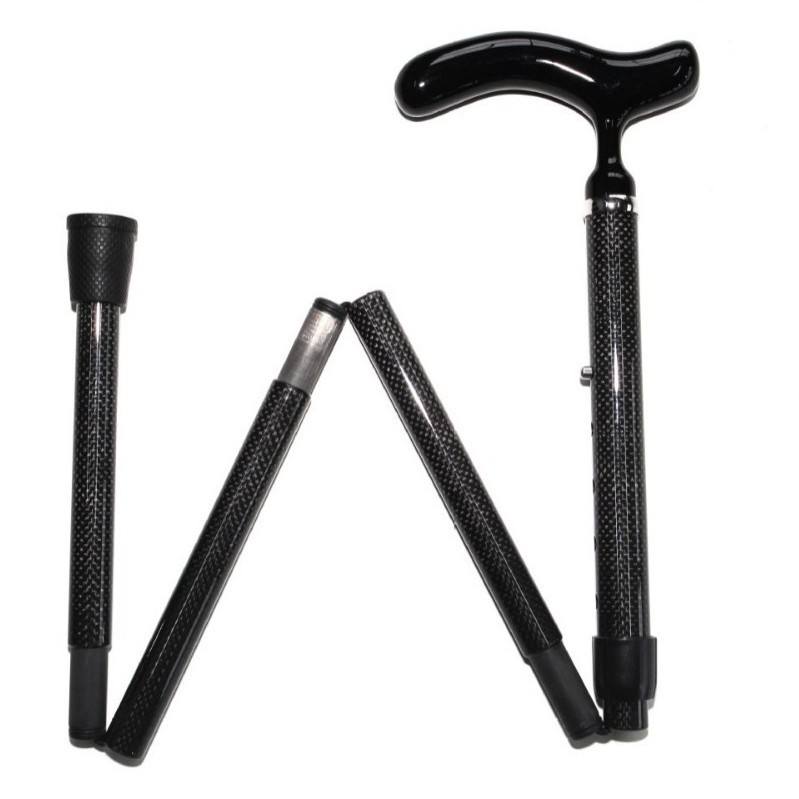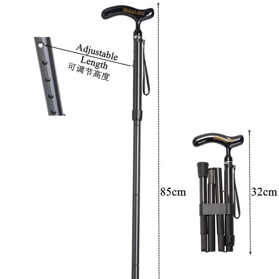 Bastón telescópico plegable de estilo europeo, bastón ultraligero de fibra de carbono para personas mayores, diseño portátil, color negro