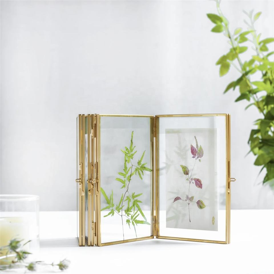 Marco de Fotos Doble de Vidrio Estilo Libro Vintage con Base de 4 Lados y Decoración para Colgar en la Pared, Diseño Rectangular Hecho a Mano y Duradero