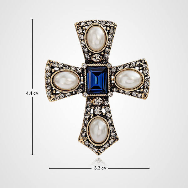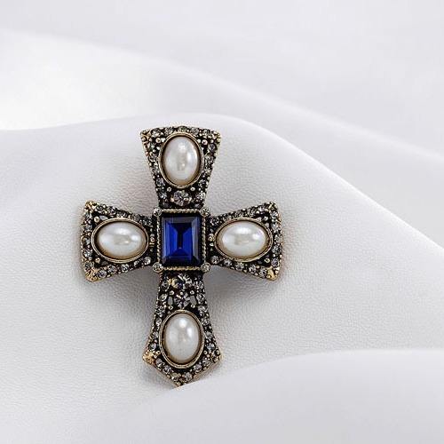 Broche Unisex de Estilo Europeo con Perlas de Aleación Chapadas en Oro Rosa, Cristales Azules y Engaste de Garra en Forma de Cruz, Piedra de Nacimiento de Abril