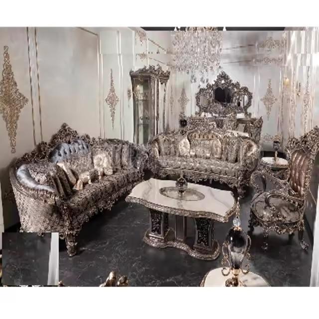 Juego de sofás de sala de estar de estilo europeo altamente elaborado juego de sofás de lujo real negro para sala de estar comprar sofás de 8 plazas